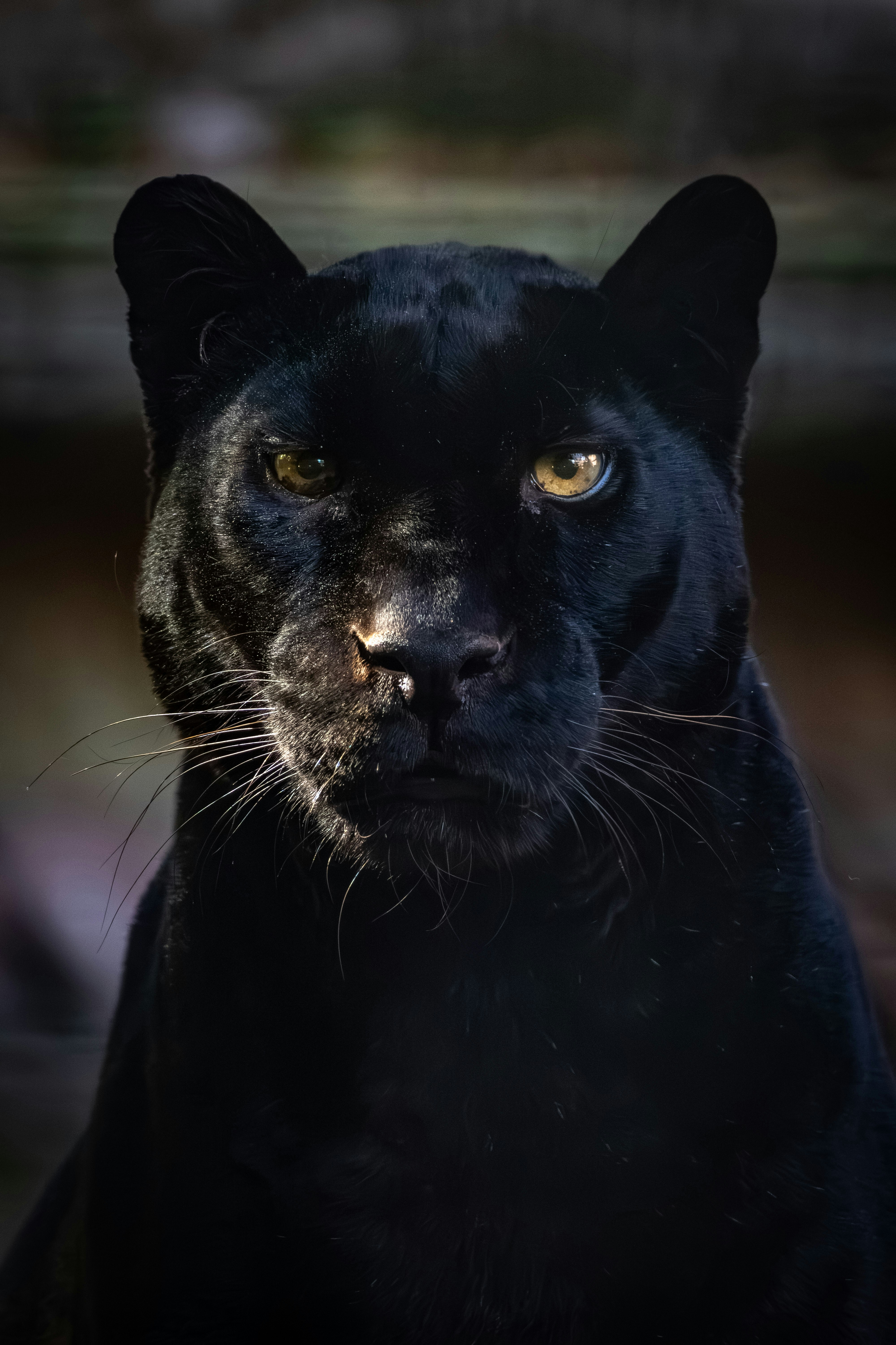 Pelage noir intense, en réalité un léopard ou jaguar mélanistique, rosettes visibles sous certaine lumière.